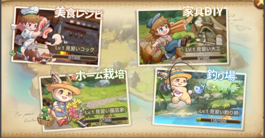 序盤はサクサク進めますが、レベルが上がるにつれてコンテンツが多くなってくるので、豊富なコンテンツで飽きにくいのは嬉しい点ですが、やることが多くて大変に感じる方もいると思います。
